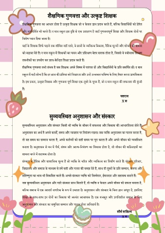 बलकक समाज म एक आदश नागररक क ऱूप म उभरता है। अनुशासन और संस्कार क लबना ज्ञान अधूरा है, इसललए