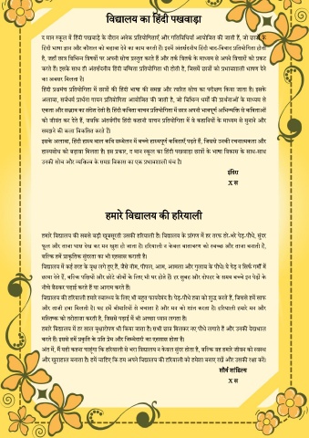 हास्र्बोध को बढावा लमलता है। इस प्रकार, द मान स्क ूल का लहंदी पखवाडा छािों क भार्ा लवकास क साथ-साथ