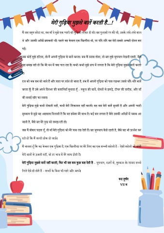 करता ह ँ। म उस अपने लदनभर की कहालनर्ा सुनाता ह ँ – स्क ूल की बातें, दोस्तों से झगड, टीचर की तारीफ़, और माँ